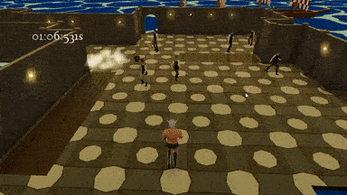 You wake up in the middle of a cursed collapsing castle, and you quickly realize that you have to save all the inhabitants of the fortress. Fortunately, ships come to your rescue! All you have to do now is collect the people and... throw them onto the ships, before the cursed castle swallows them whole.